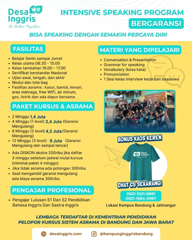 Desa Inggris Bandung – Kampung Inggris Berasrama No.1 di Jawa Barat punya solusinya: